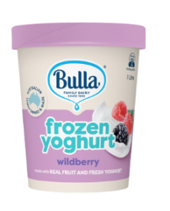 Bulla is an Australian dairy brand that sells a variety of products including ice cream, yoghurt, sour cream, thickened cream and cottage cheese. The brand’s frozen yoghurt range comes in mango, strawberry and wildberry in 1L tubs.